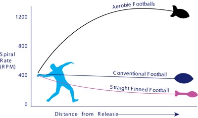 The spiraling rate of a conventional football is about 600 rotations per minute when thrown by a professional quarterback.