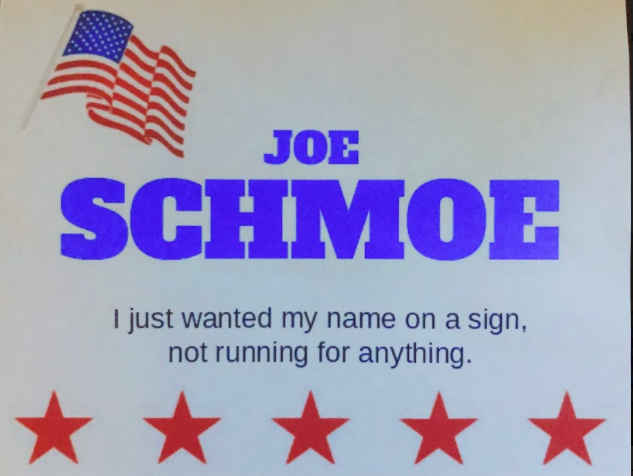 I wonder if people will even notice what’s different about my sign among the healthy ecosystem of political advertisements that occupy the roadside.