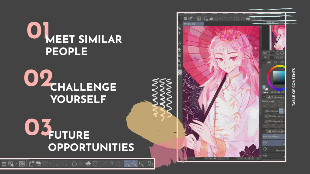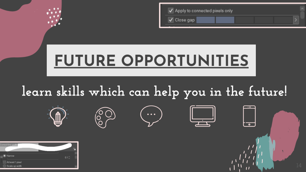 Now, you may be wondering, what can digital art offer you? Well, to start it’s a great platform to meet people, an exceptional way to challenge yourself, and is a skill which can open up to many opportunities in the future.