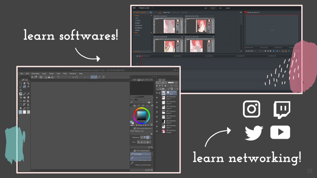 Don’t know where to start? There are so many resources online where you can learn and teach yourself. Youtube, tutorial websites, even sites such as twitter or instagram are abundant with artists sharing their story and path to learn.