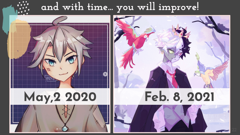 Everybody starts somewhere, and the sooner you start the sooner your journey will begin. With time, you will be able to improve your skills tremendously. And it’s always so satisfying to flip through old sketchbooks, or files, and see how you’ve progressed throughout the years. Heck, my artstyle from last year is barely recognizable anymore with how it is nowadays! Back then, although it wasn’t bad, my pieces were very simplistic in shading, backgrounds, composition, and general pose. But, just a year later, I’ve come a long way. I’ve learned much more than just people, branching out to draw scenic views and animals, as well as learned to dabble into lighting, composition, and much more complex backgrounds.