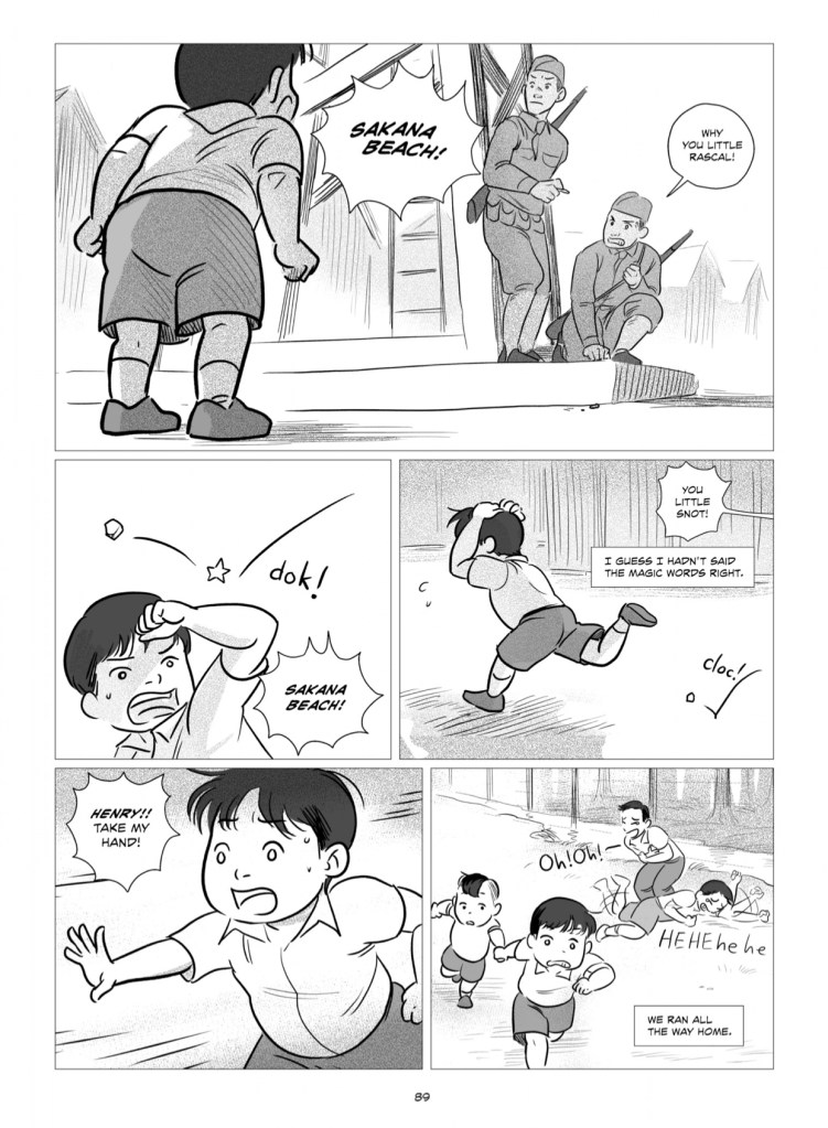 Sometimes even words without a lot of intention behind them can lead to responses from others. For example, young George shouting “Sakana Beach!” without knowing what he really meant prompted a response from soldiers.